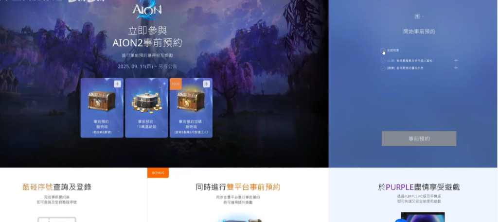 登录成功点击事先预约活动选项,在页面右侧勾选所有协议,然后点击完成事前预约。这样就能获得预约奖励的CDK,待游戏正式上线后直接兑换即可。