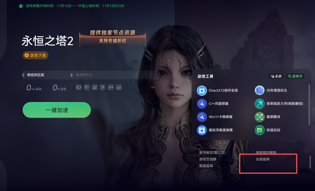 完成加速操作后,通过奇游加速工具内提供的官网链接,可直接进入永恒之塔2的官方网站。进入官网后,仔细查找并点击预约按钮,完成游戏的预约操作。