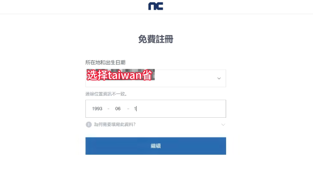 这里有个关键点:地区记得选“台湾”,因为咱们玩的是台服,选这个后续会省事很多。在地区选择那里,直接往下拉,按字母T找到“台湾”就行。接着填出生日期,只要保证年龄大于18岁就可以。
