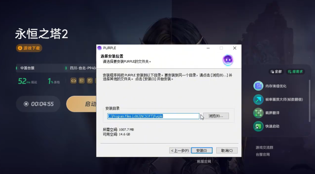 打开Purple平台,选择全球、账号所在地区再选择浏览器登录,在登录页面输入账号密码登录。在启动器内找到永恒之塔2点击安装游戏按钮开始下载安装。
