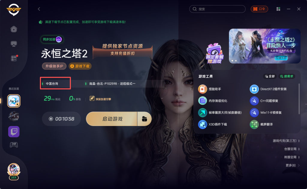 打开奇游加速《永恒之塔2》选择对应的服务器,即可正常进入游戏。