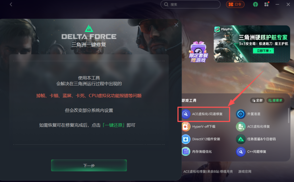 该工具特别针对《三角洲行动》的引擎特性进行了优化,能够有效处理因DirectX组件异常、Visual C++运行库版本过旧等导致的崩溃问题,为游戏稳定运行奠定坚实基础。