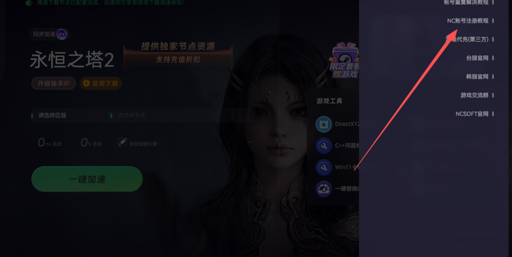加速完成后,点击工具箱中的账号注册教程,按照提示跳转至游戏官网。