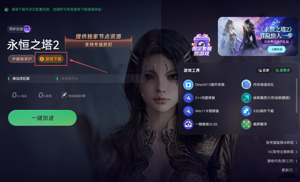 加速完成后,点击“游戏下载”。