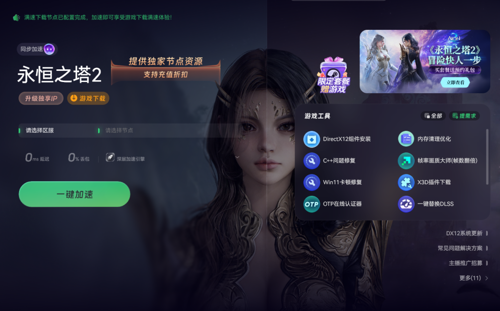 为确保下载流程顺畅,建议使用奇游加速工具辅助操作。首先启动奇游在搜索栏输入永恒之塔2选定加速服务,此时界面将显示官方网站入口。