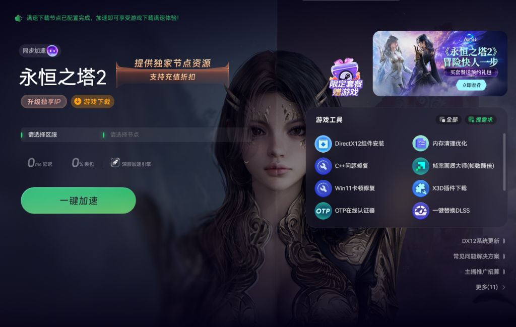 针对部分玩家反馈的Purple平台无法定位游戏或自动跳转网页的问题,经实测验证,此情况多因账号地区设置不符导致。小编建议大家使用奇游加速工具搜索永恒之塔2后,手动选择台服或韩服专用节点进行网络优化。