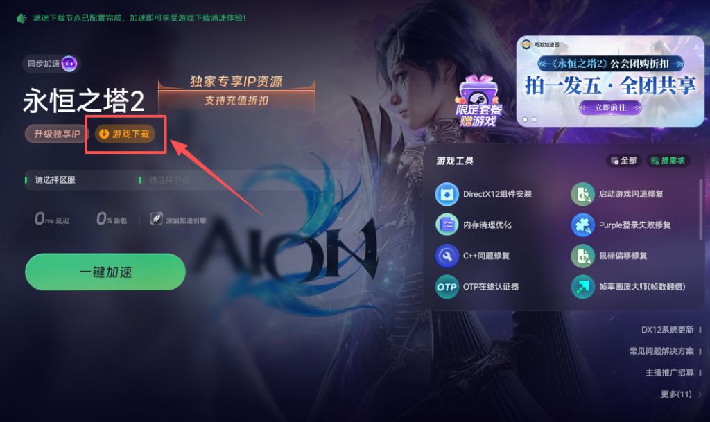 加速成功后,你就能在加速页面找到游戏下载的入口,直接下载Purple平台的安装包。