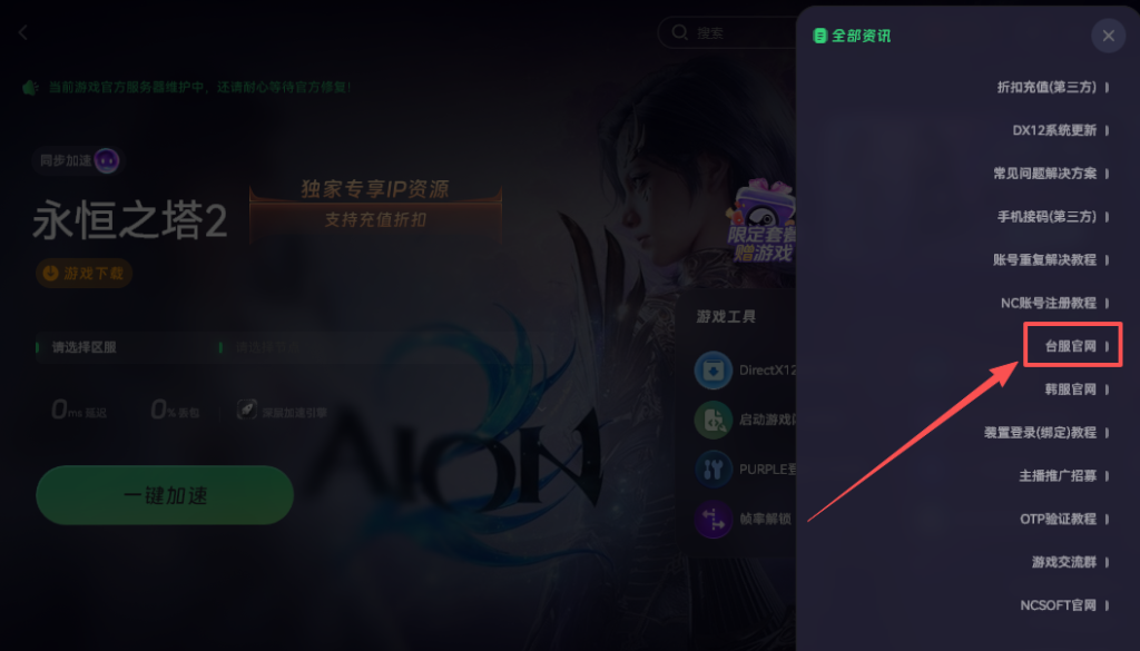加速成功后,在加速页一般会有一个官网入口按钮,点击它就能直接跳转到台服官网。