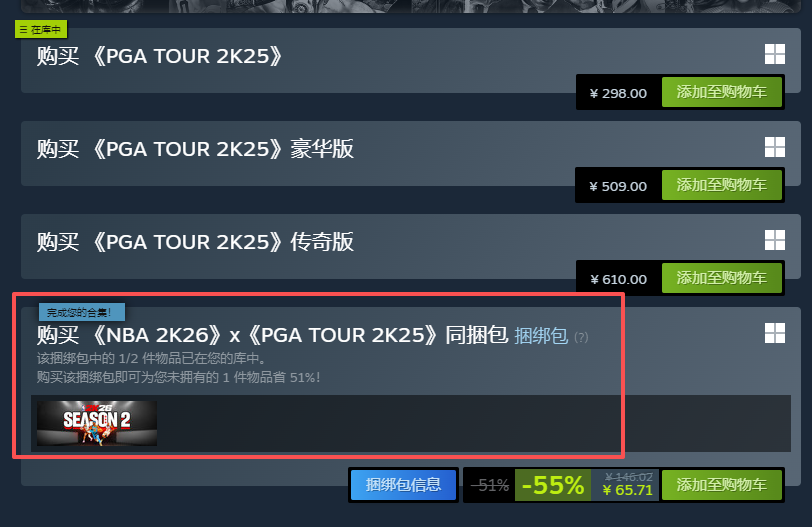 入库完成下面这个2K26的捆绑包就只需65即可入库