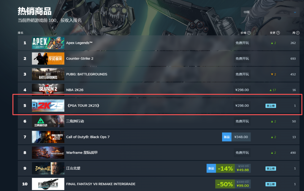 目前已经冲上热销榜第5不知道这个bug什么时候封还没入手2K26的玩家快冲!