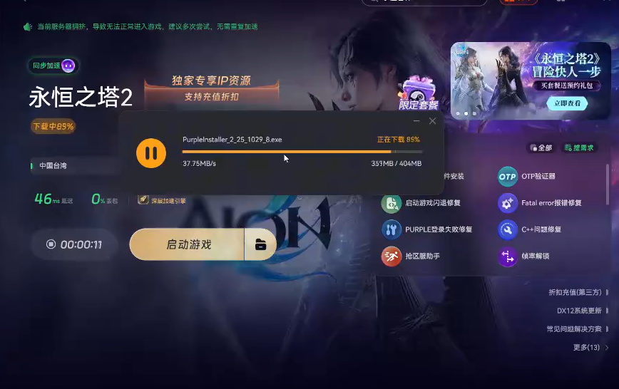 首先玩家需启动奇游加速工具,在搜索框中输入永恒之塔2。点击后进入下载页面,根据个人偏好选择相应的区服版本进行下载。