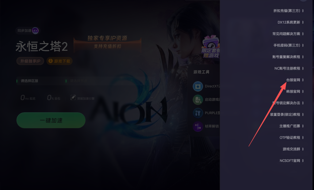 完成加速设置后在加速工具右侧的工具栏中,向下滑动屏幕,找到台服官网入口并点击进入。进入官网后,页面上会有下载的选项,点击该选项,就可以开始下载游戏客户端了。