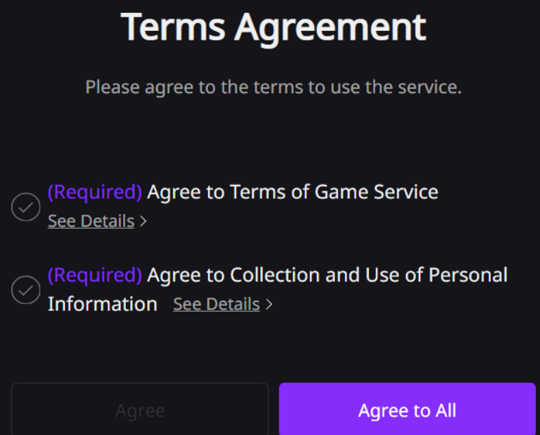 安装好purple客户端后,进入登录界面。若玩家已有谷歌账号,可直接使用该账号登录purple平台;若没有点击下方的注册按钮,系统会自动跳转至NC网页进行账号注册。