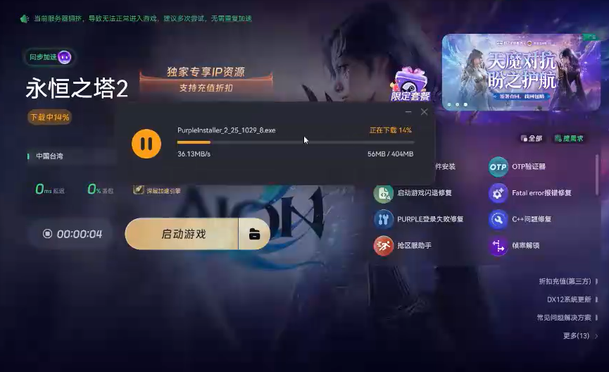 系统会自动启动purple平台的安装程序,永恒之塔2的下载必须依托purple平台,所以这一步骤是整个流程的关键起始点。