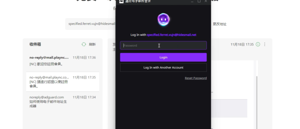 完成账号注册后,返回登录界面,选择邮箱登录,输入刚刚注册好的账号密码。