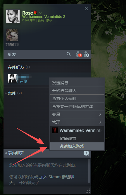 最后联机也很简单,主机玩家在游戏房间内,按下Shitf+tab呼出Steam叠加界面,右键好友邀请