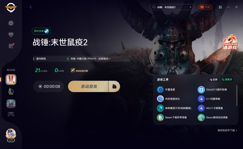可以使用奇游加速《战锤:末世鼠疫2》即可正常游玩。