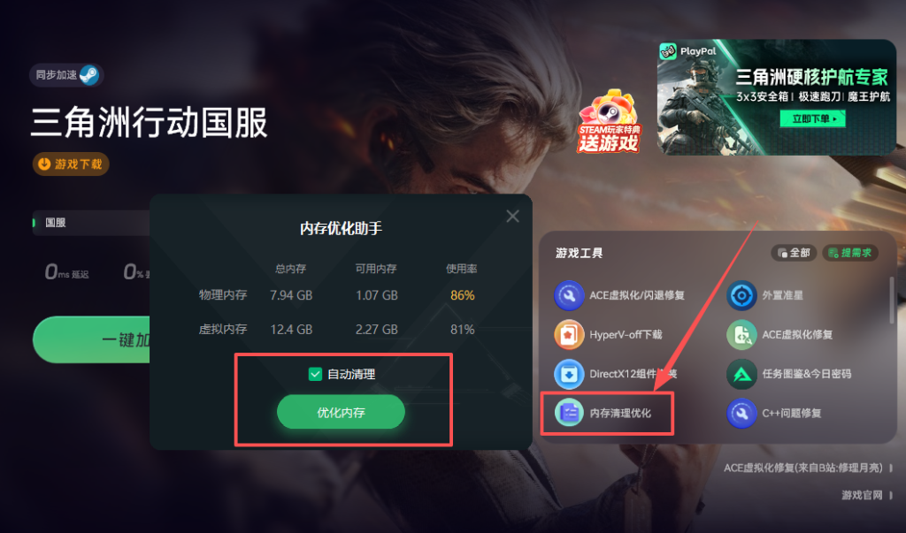 在打开《三角洲行动》过程中,打开奇游,搜索”三角洲行动”。优化电脑本地网络的环境,从而解决因网络问题导致的游戏闪退、卡死、崩溃、蓝屏等情况,顺利解决问题。手机党也有福利,奇游有手机加速版,加速页面能轻松切换,扫码就能得到 APP,随时随地加速都不会掉线。