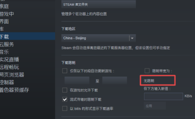 带宽限制设置不合理,也可能导致Steam下载出现问题。如果带宽限制过小,会限制下载速度,甚至出现连接超时的情况。适当调整带宽限制,确保Steam有足够的带宽进行下载,能够提高下载的稳定性和速度,解决下载连接和速度方面的问题。