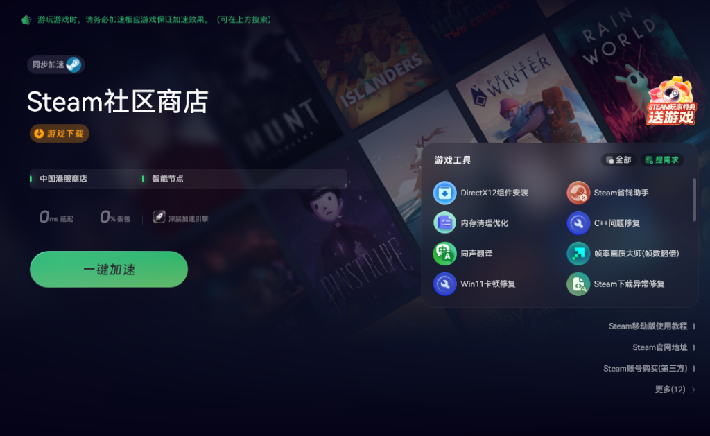 由于Steam的服务器不在国内,国内玩家在访问和使用时,会面临各类网络问题,进而导致下载连接超时、无法连接内容服务器以及下载速度慢等情况。此时优化网络是关键。一奇游加速工具就能够针对Steam的网络特性进行优化,改善网络连接质量,降低网络延迟,减少数据传输过程中的丢包现象。