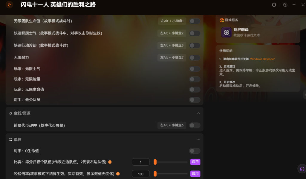 使用前记得关闭杀毒软件。启动游戏后再开启修改功能。建议在单机模式下使用。非正版游戏可能无法生效。