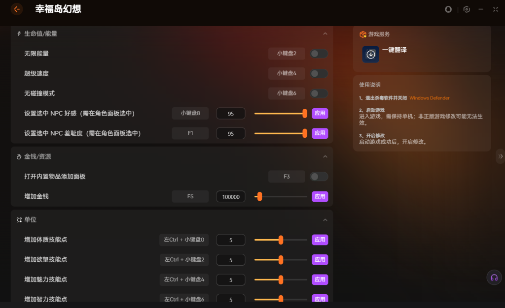 以上就幸福岛幻想修改器介绍 支持开启无限能量+超级速度的全部内容。