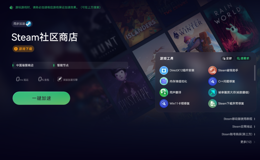 在注册Steam账号的过程中,不少玩家会遇到提示错误的问题,这大多是由网络状况不佳导致的。玩家们可以打开奇游加速工具,搜索steam进行加速,从中找到STEAM下载选项。