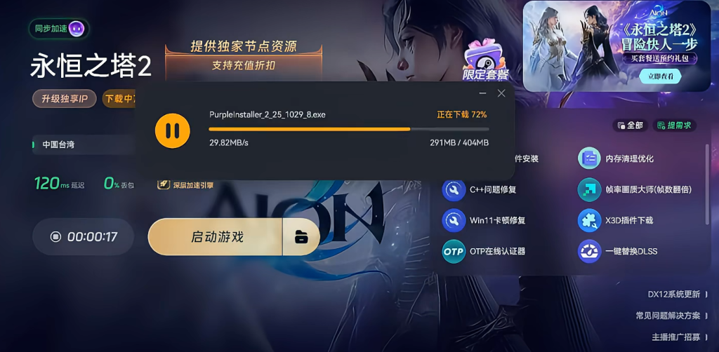 永恒之塔2游戏预下载正式开启,玩家只需下载NCsoft的PURPLE平台,就能开启游戏之旅。下面小编就为大家详细介绍永恒之塔2客户端的下载方法,并推荐一款实用的加速器。