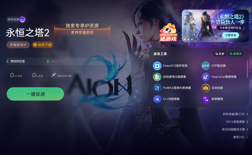打开加速器,搜索并启动对应的加速节点,等网络状态稳定后,再访问永恒之塔2官方网站,这样后续操作会更顺畅。