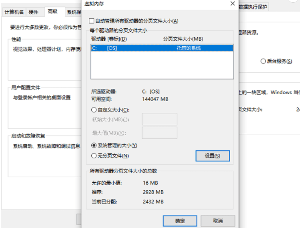 解决方法二:调整虚拟内存配置