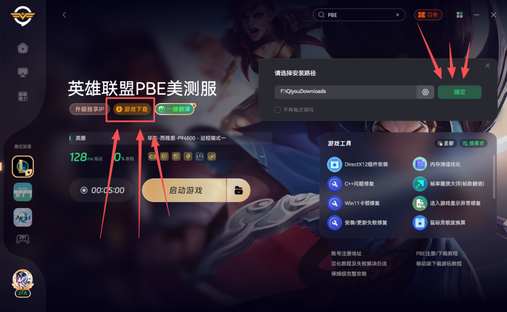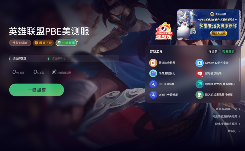 对于PC端玩家而言,首先需打开奇游加速工具,对英雄联盟PBE美测服进行加速,以此保障后续下载与运行的流畅性。