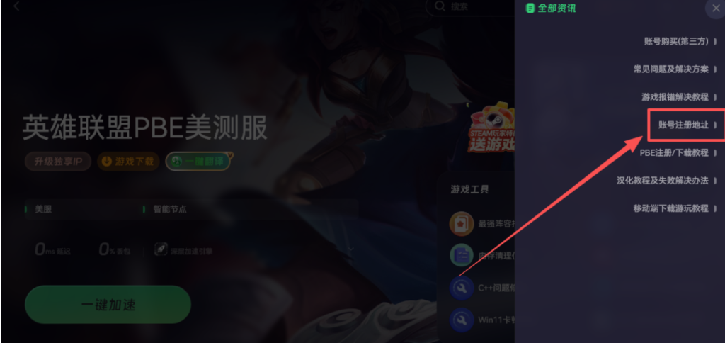 加速成功后,在页面右侧找到PBE美测服的注册入口,点击进入即可开始账号注册流程。在注册邮箱的选择上,推荐使用企鹅邮箱,操作相对简便。