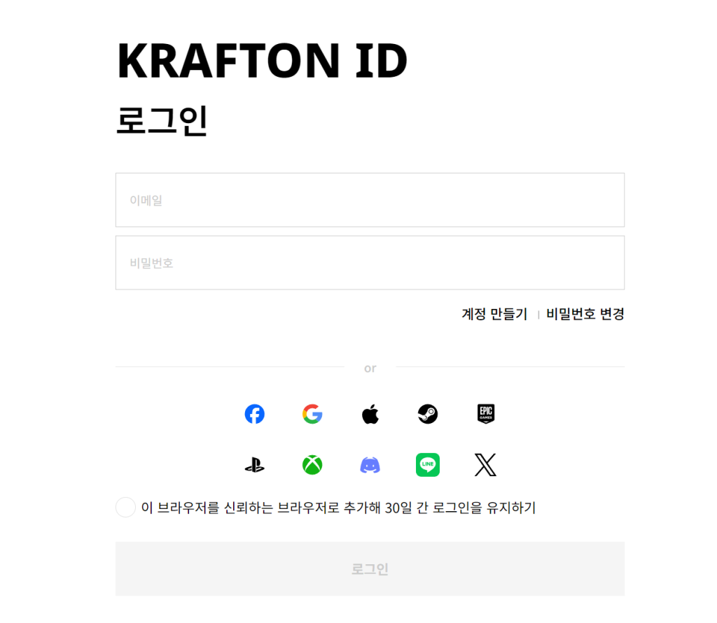 登入你的Krafton蓝洞账号,没有的注册一个