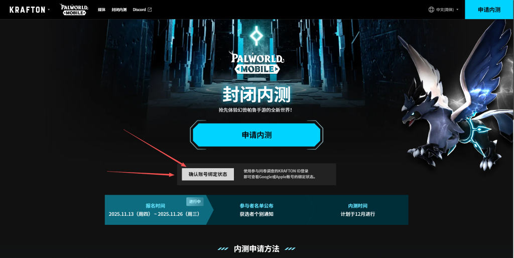 之后我们返回申请测试资格地址,点击确认账号绑定状态