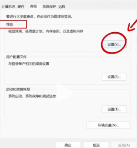 在“性能”那里点“设置”,再选“高级”选项卡,找到“虚拟内存”并点击“更改”。
