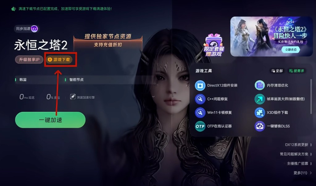 为避免网络问题干扰注册流程,玩家可先借助奇游加速工具优化网络环境。打开奇游加速工具对永恒之塔2进行加速。解决不少玩家在注册时可能遭遇的网络难题,让注册过程更加顺畅。