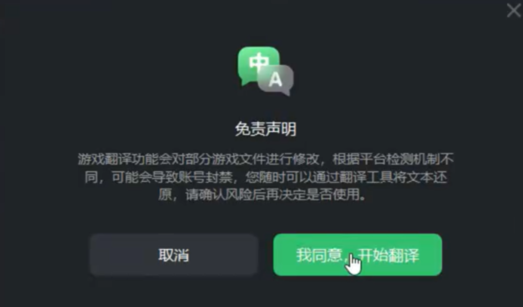 加速成功后,在加速工具界面中,能够看到一个汉化工具选项。点击打开该汉化工具,此时会弹出相关协议提示,仔细阅读后点击同意。