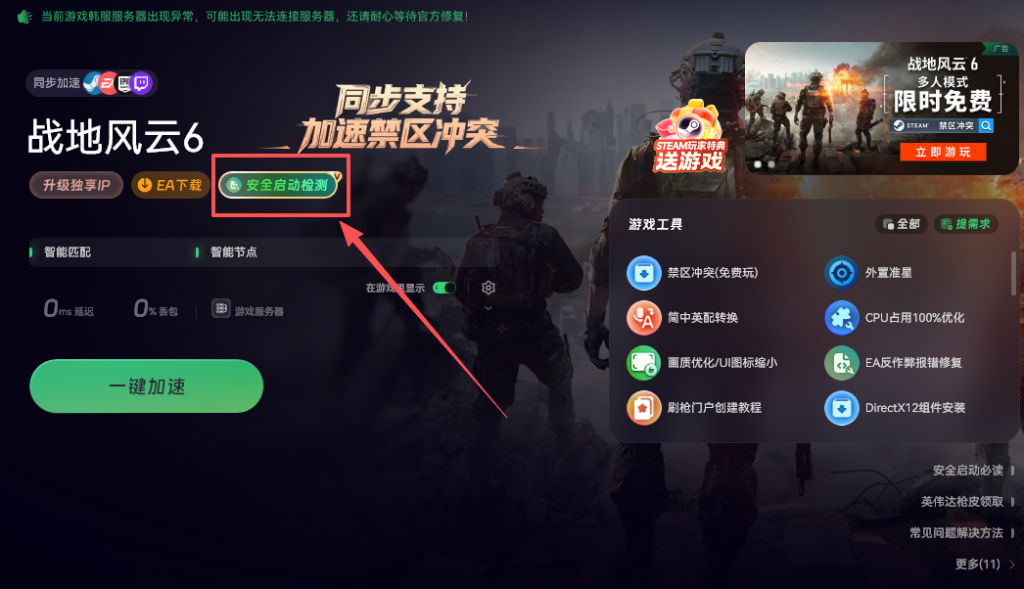 在打开《战地6》过程中,打开奇游,搜索”战地6″。优化电脑本地网络的环境,从而解决因网络问题导致的未启用SecureBoot、安全启动问题等情况,顺利进入游戏世界。