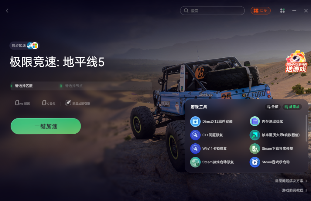 在打开《极限竞速地平线5》过程中,打开奇游,搜索”极限竞速地平线5″。优化电脑本地网络的环境,从而解决因网络问题导致的进不去游戏、需要登录档案才能继续等情况,顺利解决问题。