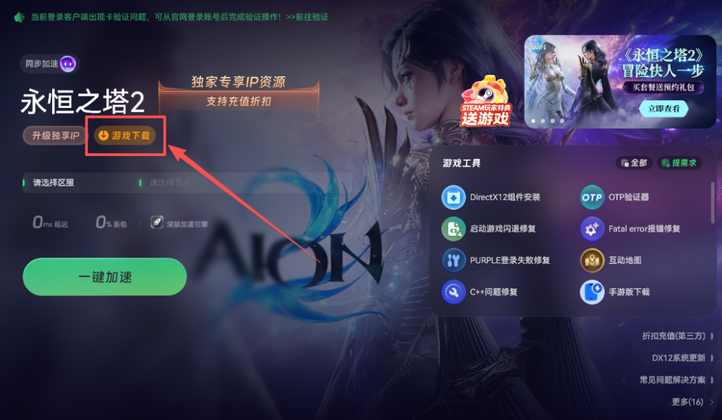 加速成功后,加速界面通常会有一个“游戏下载”的按钮,直接点击它来下载游戏平台客户端。
