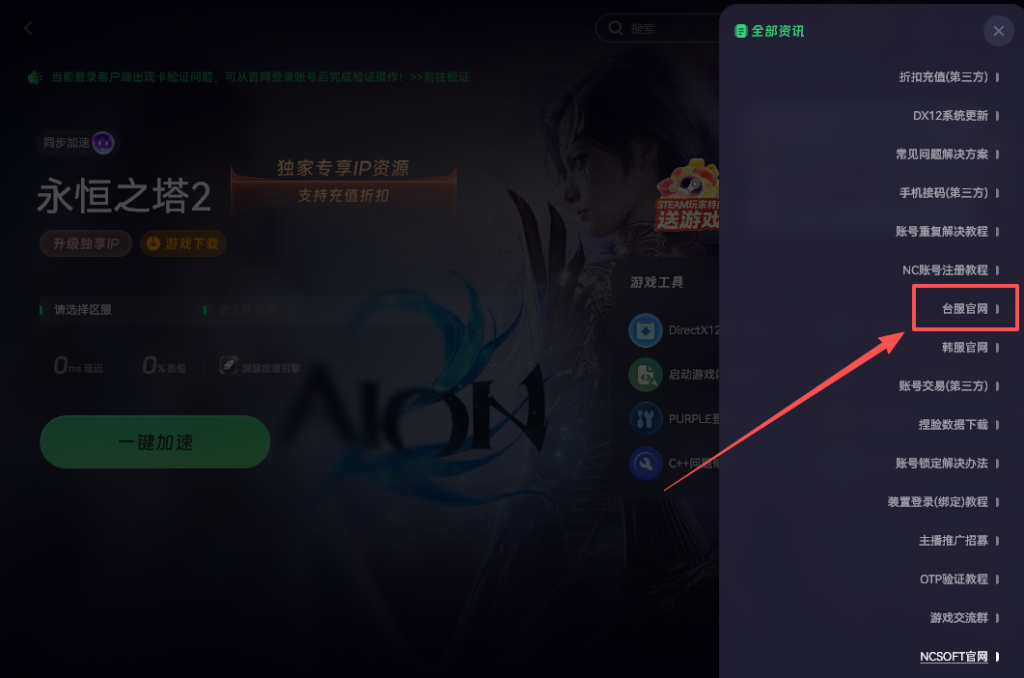 装好 Purple 之后,先别急着登录,点击右边的“台服官网”入口。