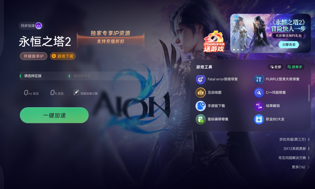 在账号注册前,优化网络环境必不可少。先开启奇游加速工具,在搜索框输入永恒之塔2选择台服节点加速,这能防止注册时因网络问题导致操作中断或失败。