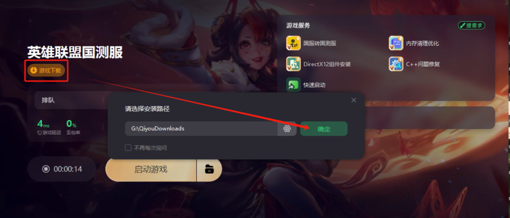 对于国测服的下载,大家可以使用奇游加速器来辅助操作。在奇游中优化英雄联盟国测服后,在其右侧能找到国测服下载教程入口。