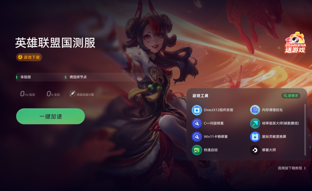 加速成功后,在工具界面找到“游戏下载”按钮,点击就能实现一键下载,整个过程十分便捷,大大节省了玩家寻找下载渠道和下载的时间。