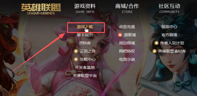 先打开英雄联盟官网,在页面左上角找到“下载”按钮,点进去之后选择“媒体服”版本进行下载。