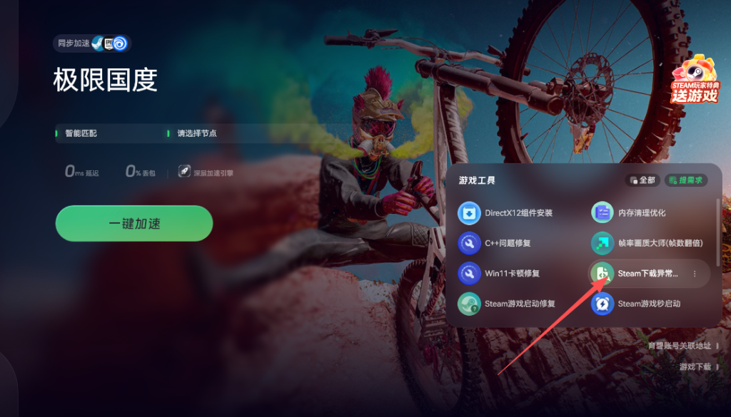 解决方法二:使用奇游加速工具 Steam 下载异常修复