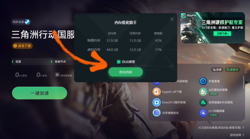 三角洲行动闪退,崩溃,卡死,突然掉帧,黑屏等问题一键轻松解决