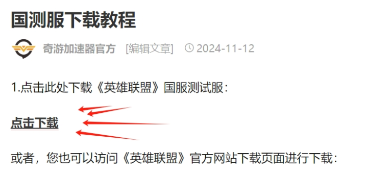 首先,如果你想顺畅地体验测试服,建议先用一下奇游加速工具。打开奇游之后,在里面找到“英雄联盟国测服”这个选项,进入它的专属页面。