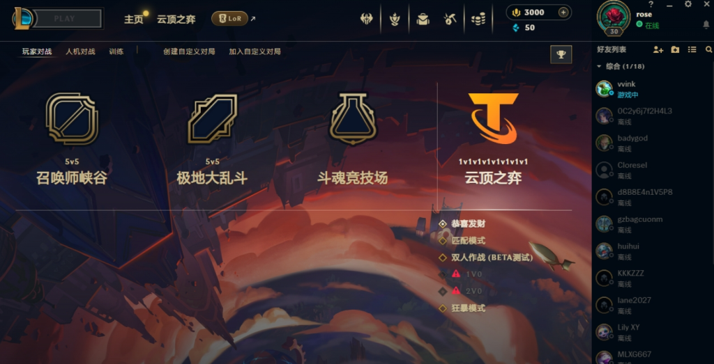 装好之后,打开游戏客户端,登录你有测试服资格的账号。验证通过之后,就能直接进游戏了。这样你就可以马上开始玩S16,体验新赛季的各种内容了。