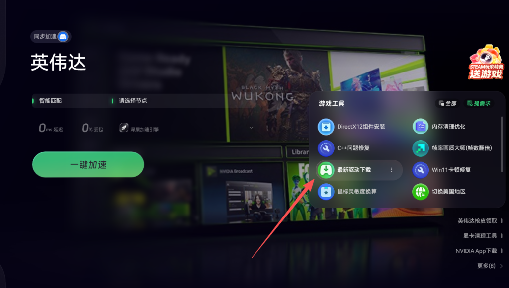 针对游戏闪屏、突然掉帧等问题,玩家还可以返回奇游加速工具,搜索英伟达相关组件,并点击右边的登录修复版本进行修复。这一操作有助于解决因驱动或组件问题导致的游戏画面异常,提升游戏的流畅度和稳定性。